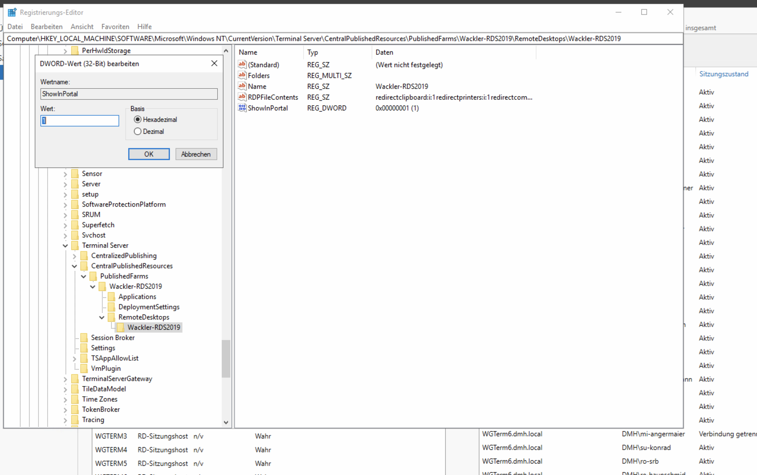 Bei Aktivierung von Terminal App Services wird der Remotedesktop nicht mehr angezeigt Dann muß ein DWord 32 Wert eingetragen werden: ShowInPortal mit Wert 1 Michael Angermaier - 23. November 2023 06:46